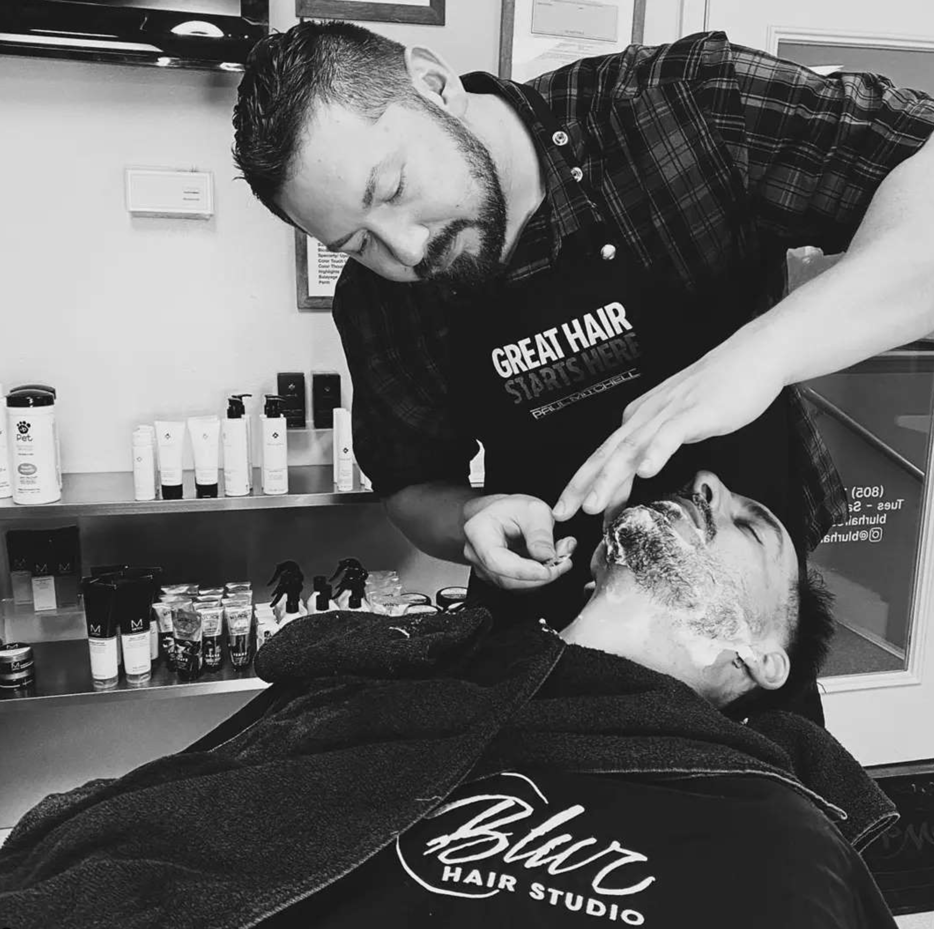 Shane Brown apprenticed at BLUR Hair Academy. BLUR Hair Academy is designed to bring an advanced education program to all levels of stylist and barbers. Shane’s specialty straight shave are becoming a local legend, and go great with all the other services that he provides such as Classic Clipper Cuts, Beard trims / shaping and some color services. California born and raised Shane is a Navy Veteran who lives with his beautiful daughter in California’s breathtaking Golden Coast.